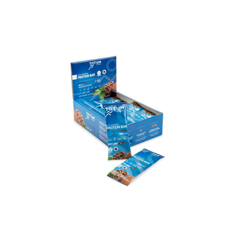 CAJA DE BARRITAS VEGANAS TOTUM SPORT, CACAO Y AVELLANAS-24 UNIDADES